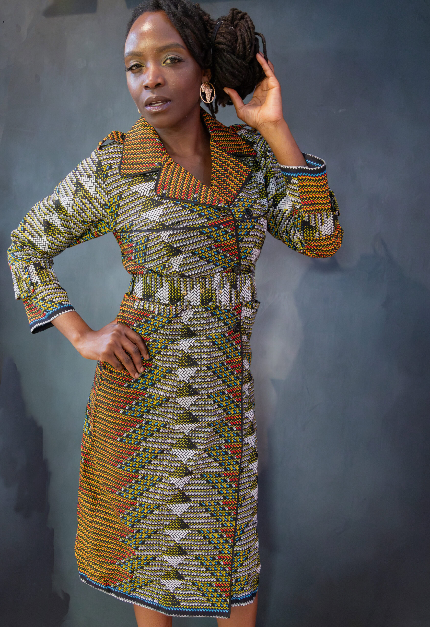 African Print Trench Dress