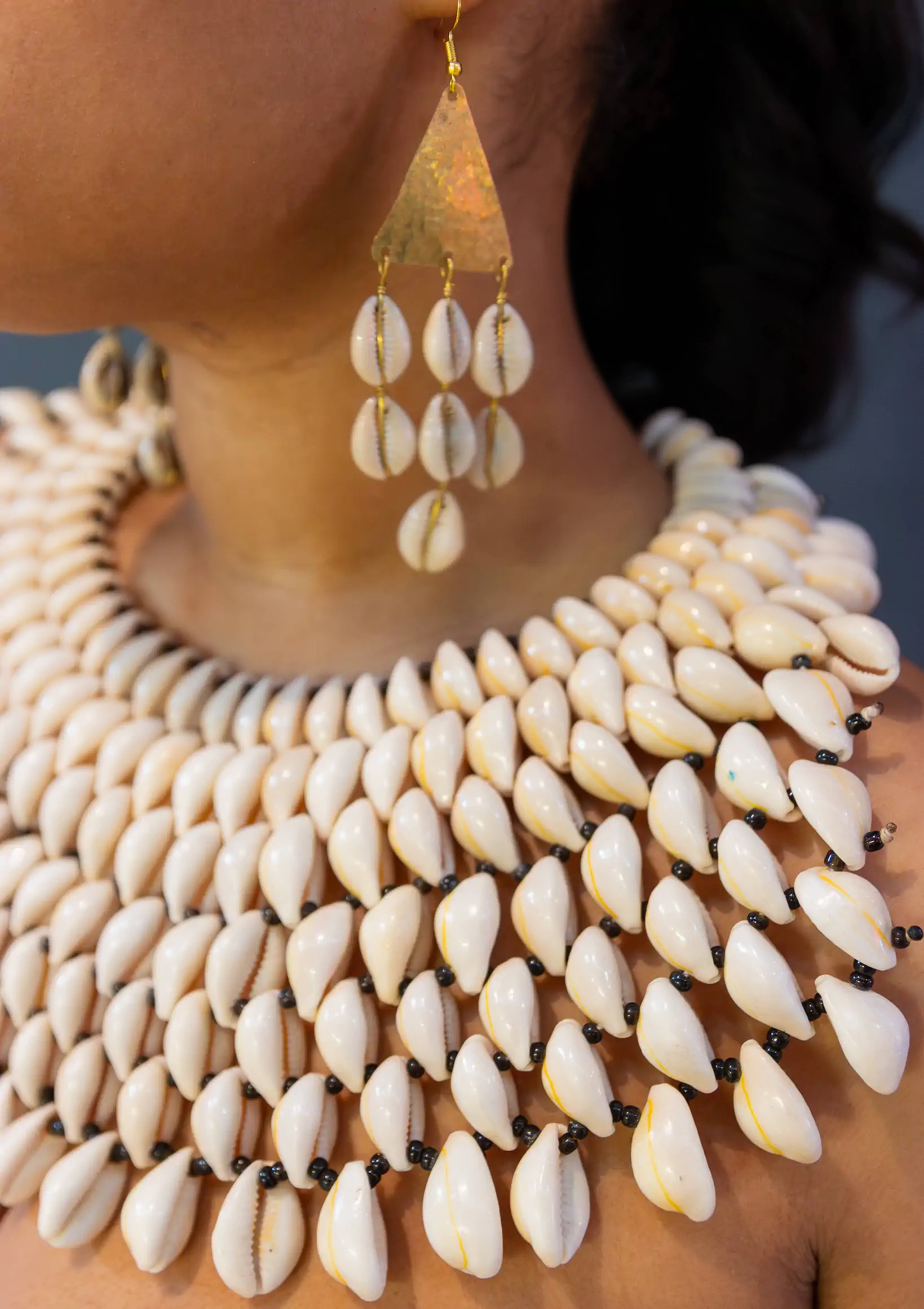 This Statement Cowrie Shell Necklace is crafted with Authentic Cowrie Shell Beads for a unique and beautiful look.It is a unique piece of African Tribal Jewelry, sure to make a statement. Handmade with love, this is the perfect accessory for any wardrobe.